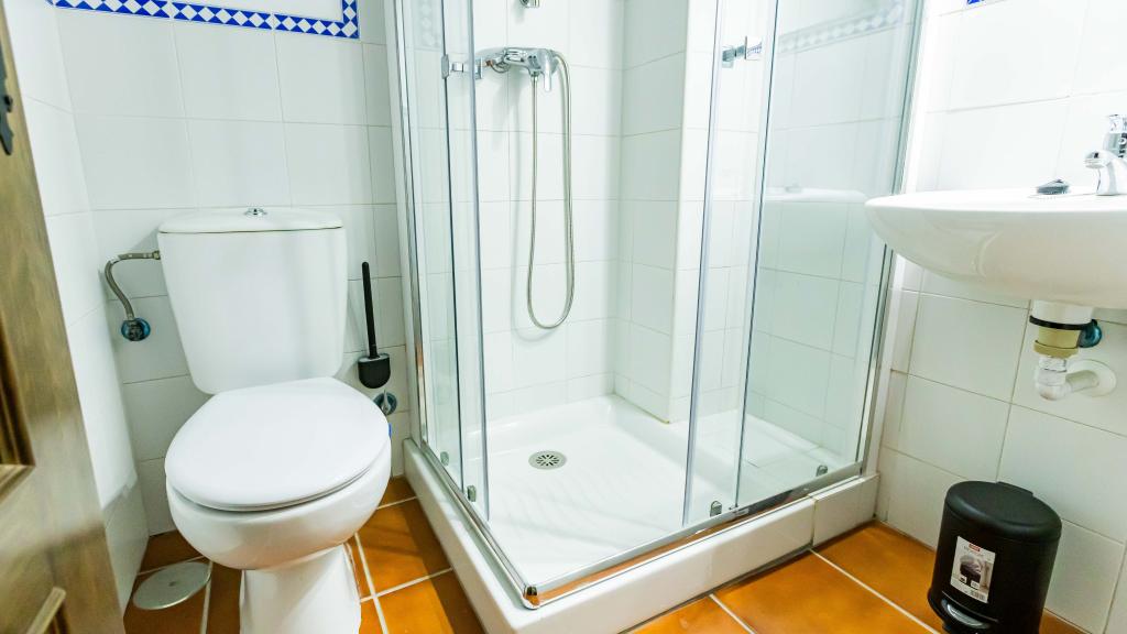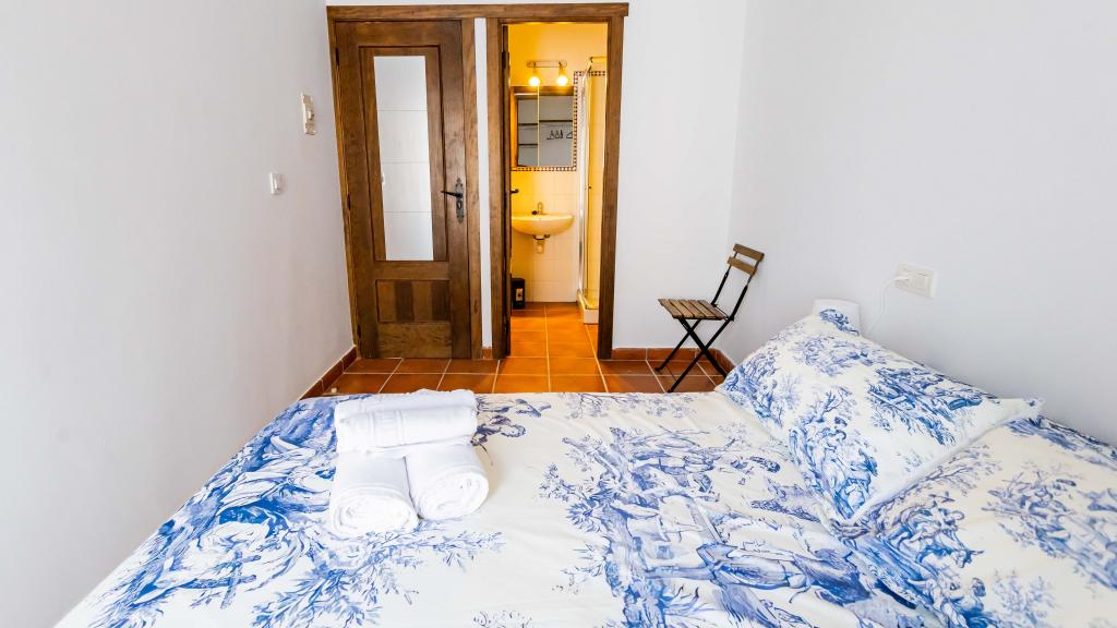 Elegante y confortable habitación doble equipada con una cómoda cama de matrimonio, ideal para parejas o personas que deseen mayor amplitud durante el descanso. A ambos lados de la cama se encuentran dos mesitas de noche, perfectas para mayor funcionalidad y comodidad. Dispone de un armario abierto sin puertas, que facilita la organización del equipaje y el acceso rápido a la ropa. El baño privado en suite está completamente equipado con ducha, lavabo, WC y toallas. Además, la habitación cuenta con aire acondicionado con Split individual, lo que permite mantener la temperatura deseada durante todo el año. Un espacio acogedor, práctico y pensado para el máximo bienestar.